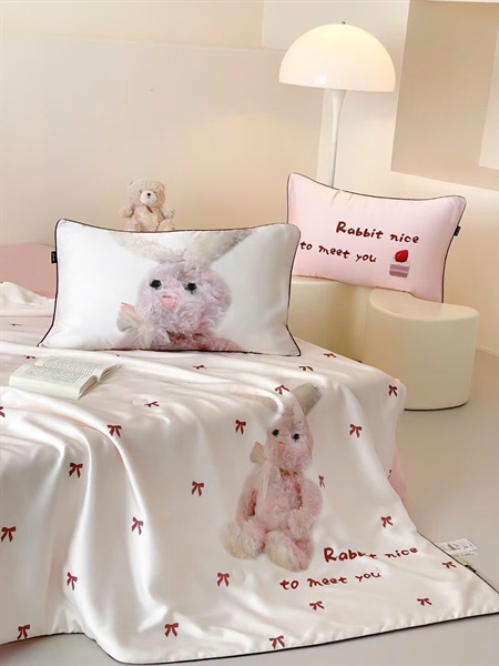 Bộ ga 4 món - nơ hồng thỏ hồng - Chăn hè chần * | Tencel - LW02.03