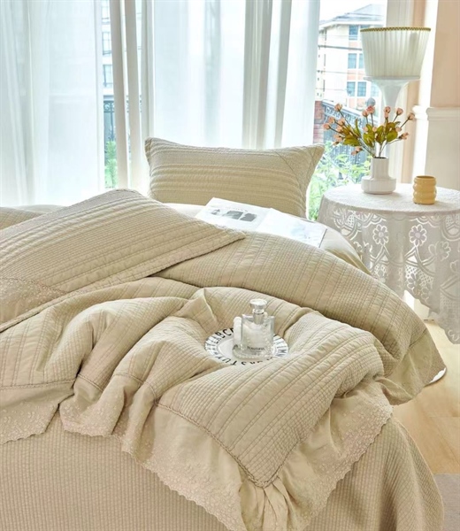 ✿ Chần bông toàn bộ bộ ga với viền ren kiểu Pháp