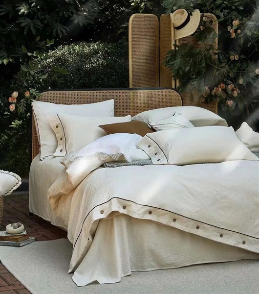 Sử dụng chất liệu cotton-linen cao cấp, mềm mại, thoáng khí, mang lại cảm giác dễ chịu như làn gió nhẹ nhàng thoảng qua, giúp bạn thư giãn và an yên suốt cả đêm. Mỗi tấm vải như chạm khẽ lên làn da, đem đến sự dịu dàng từ thiên nhiên, khiến bạn như đang nằm giữa cánh đồng buổi sớm, tận hưởng không khí trong lành.