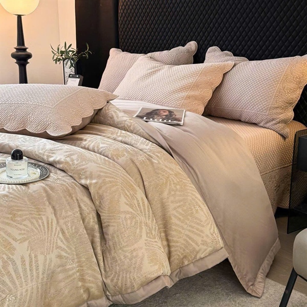 Bộ ga chần Vip "Khinh diệp" | Jacquard Cotton 80s cao cấp - Chiếc lá me, kem dệt lá - Chần full - LX09