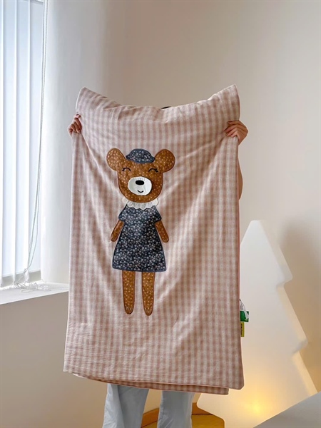 Nhân vật hoạt hình đáng yêu được “thêu” trên bề mặt chăn với kỹ thuật đáp vải tinh xảo. Nhân vật vừa thời trang vừa đáng yêu. Dù đặt trong phòng trẻ em hay phòng ngủ người lớn, bộ chăn này đều có thể “thắp sáng” không gian và đưa bạn vào một thế giới phiêu lưu diệu kỳ.