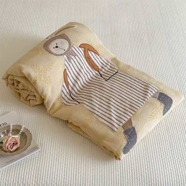 Nhân vật hoạt hình đáng yêu được “thêu” trên bề mặt chăn với kỹ thuật đáp vải tinh xảo. Nhân vật vừa thời trang vừa đáng yêu. Dù đặt trong phòng trẻ em hay phòng ngủ người lớn, bộ chăn này đều có thể “thắp sáng” không gian và đưa bạn vào một thế giới phiêu lưu diệu kỳ.